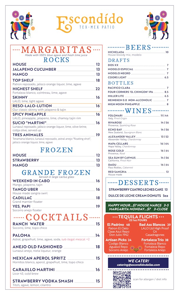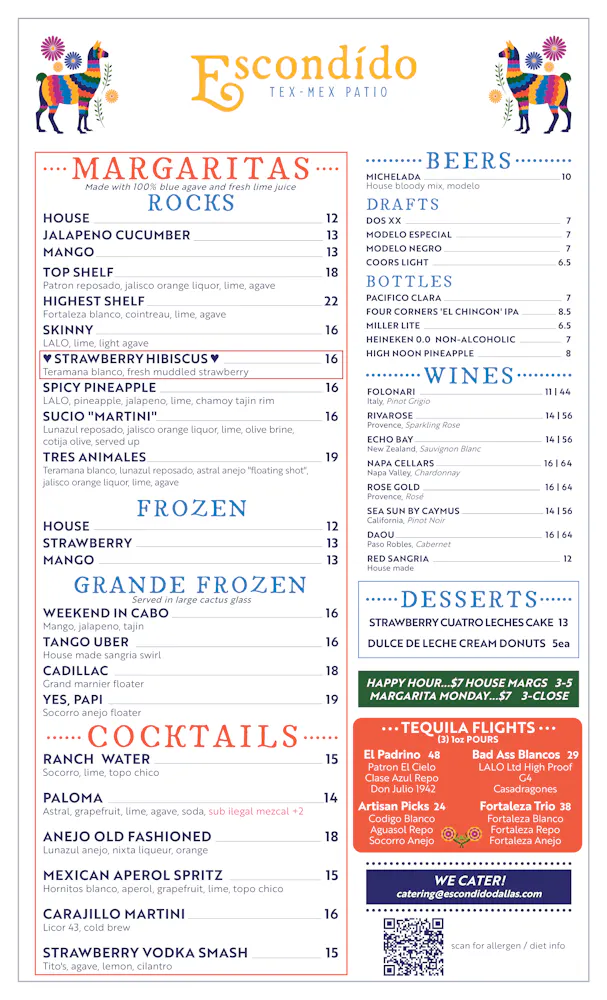 Egg, bacon, potato, cheddar, guac, lime crema, pico, ranchero, green chile, sour cream sauces