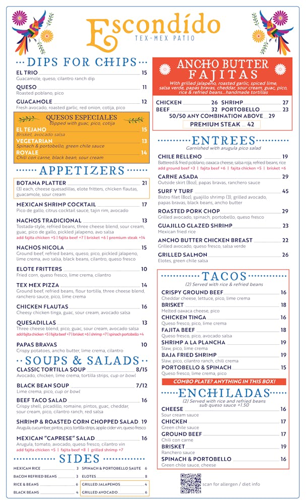 With guac, pico, sour cream, salsa verde, tortilla strips-